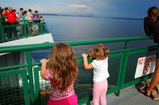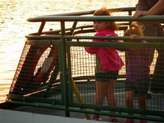 Before we knew it, the zoo was ready to close. Abby and Ellie were having such a great time and didn’t want to leave. Shaun and I certainly like to encourage a love for places like the zoo but when you have to encourage two young children to leave, sometimes bribery is involved. So, as an incentive we told them that if we left, we would take a ride on the ferry and then get some dinner. It worked like a charm! I swear to you, we don’t do this often.
