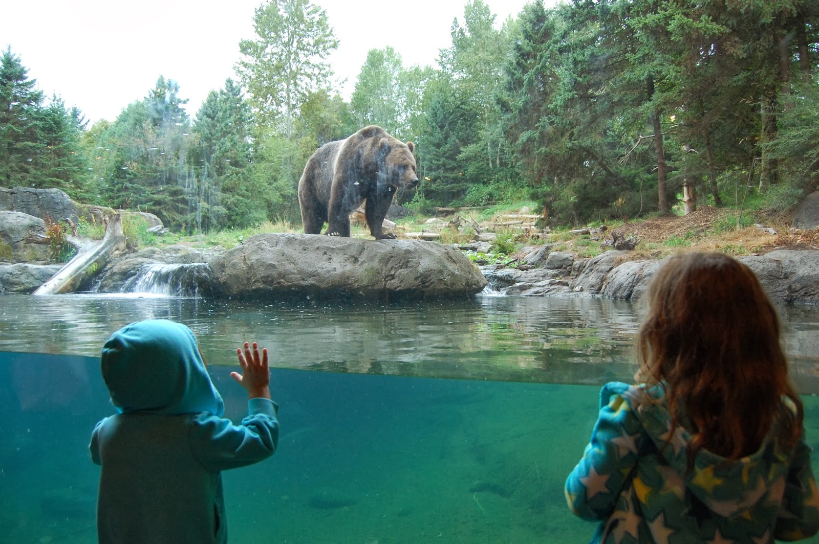 Watching the trout and salmon and hoping that Mr. Brown Bear might come down for a drink. Love the viewing areas for the North American habitats.