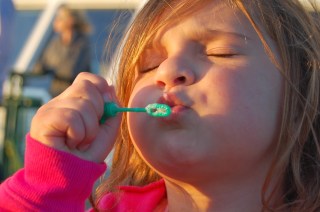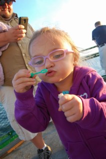 The sunset on the very was spectacular. Being stuck in traffic made the timing perfect. Grandma Zoe brought the girls bubbles to play with and they had a blast trying to blow them out on the observation deck of the ferry. When they were able to produce bubbles, the girls couldn’t help but giggle as they blew back into their faces.