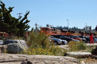 As we played along the beach and long freight train passed by, honking his horn to let us know he was coming through town.