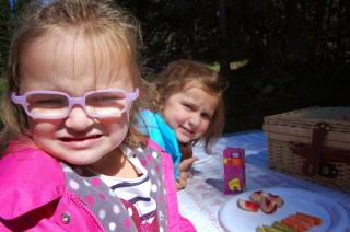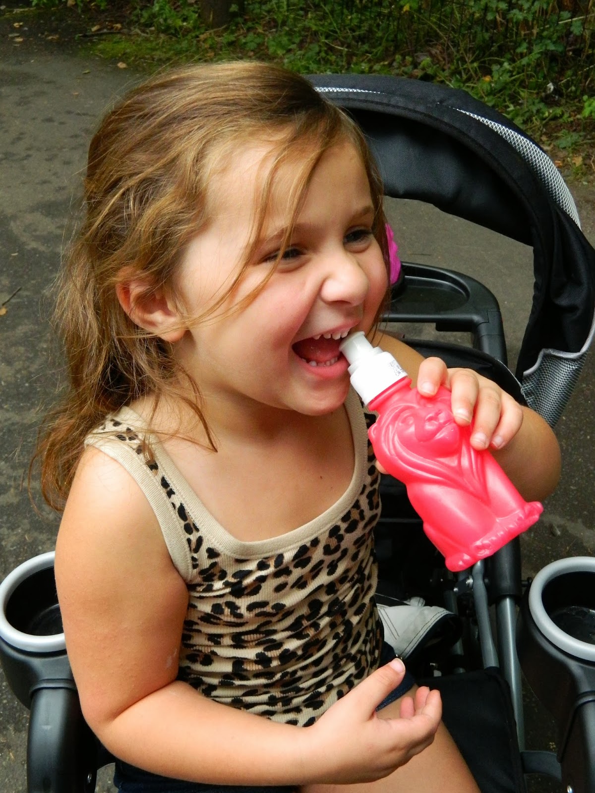 The day in the park was perfect, a little warm but what can you expect for August! Grandpa let the girls use his binoculars and they were really excited about it. They became our animal scouts for the day!  I worried that constantly looking through them as we drove along might result in the need for some car sick bags.