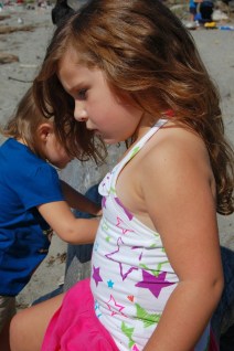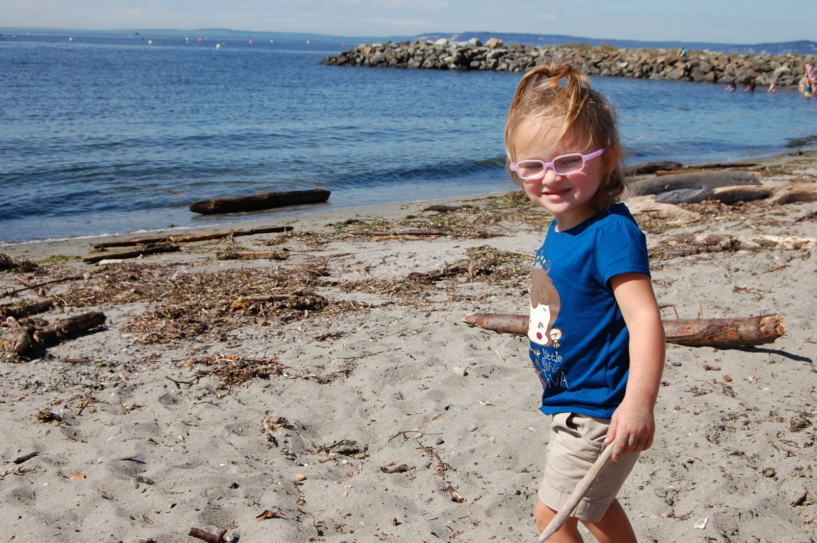 Thinking and enjoying the feeling of sand in her toes. They are still learning that beaches along Puget Sound are a tad different than the ones in Southern California.