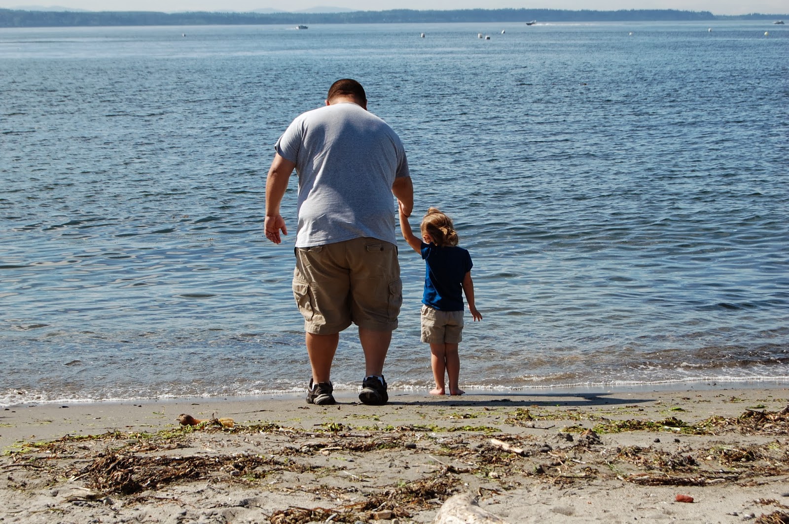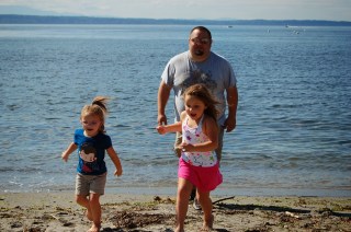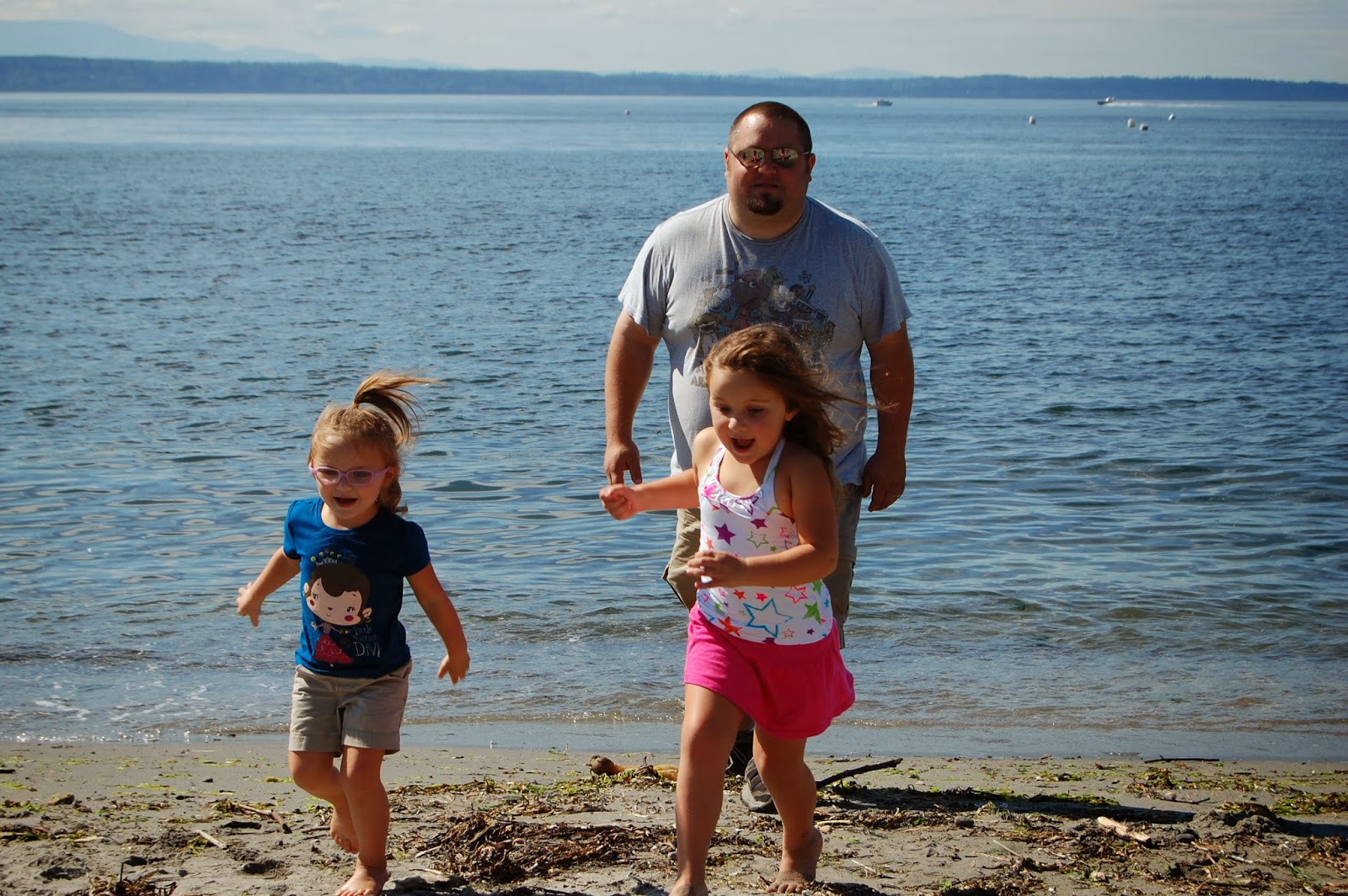 Exploring with daddy near the waters edge. Each time a move came in, the girls would run and scream in delight.