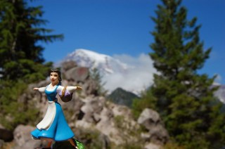 After lunch we made the final trek up to Paradise for a stop at the Visitor Center. That was the point in which Shaun and I were completely baffled. Our last trip to Mt. Rainier National Park was in May of 2008. The winter of 2007/2008 had been a very heavy one and the snow walls near Paradise rose about 8 ft. above our car. During that trip we stopped at the visitor center, which was still surrounded by snow but I knew what it looked like from prior trips with Shaun and with my parents and sister. When we arrived at Paradise with the girls, the Visitor Center that we knew of was gone. We drove in circles and couldn’t find it! We questioned if we were in the right place, which I knew we were, but how could you lose a building? Yes, it was surrounded by snow the last time we saw it but the terrain hadn’t changed that much or had it? Well, as it turns out in the summer of 2008, after all of that snow melted, the old visitor center was torn down and a new one was built. Shaun and I were kind of sad because the original building was pretty neat and even had an area where visitors could monitor the seismic activity of the mountain but eventually things change. Instead of being sad about this change we sucked it up and checked out the new center. In the end, Abby and Ellie really enjoyed it and that’s all that really matters.