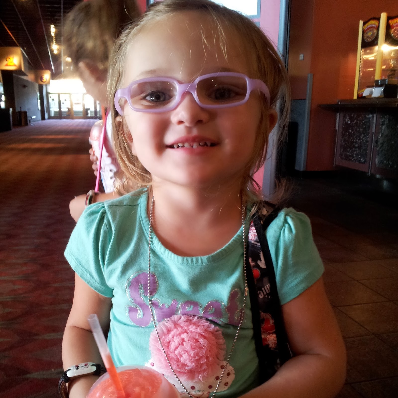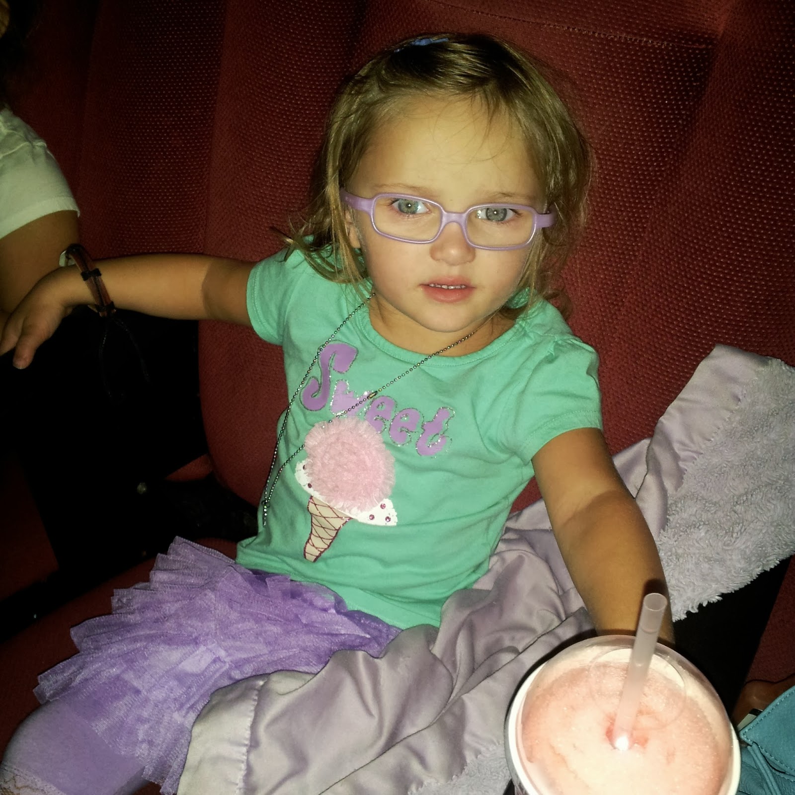 Because it was such a special day, Ellie was give the chance to pick out where we sat. She chose our seats (good ones too, not too close but not too far away) and then made herself comfortable, blankie and all. She did an amazing job watching the movie and only needed to use the potty once. I kind expected that considering she sucked down her Icee.The movie was great and the girls were so well behaved. Ellie did a great job with her very first movie and I think it helped that they loved Despicable Me and the minions. After the movie it was dinner and then home. I have a feeling we have a big day ahead of us tomorrow. Cant wait!