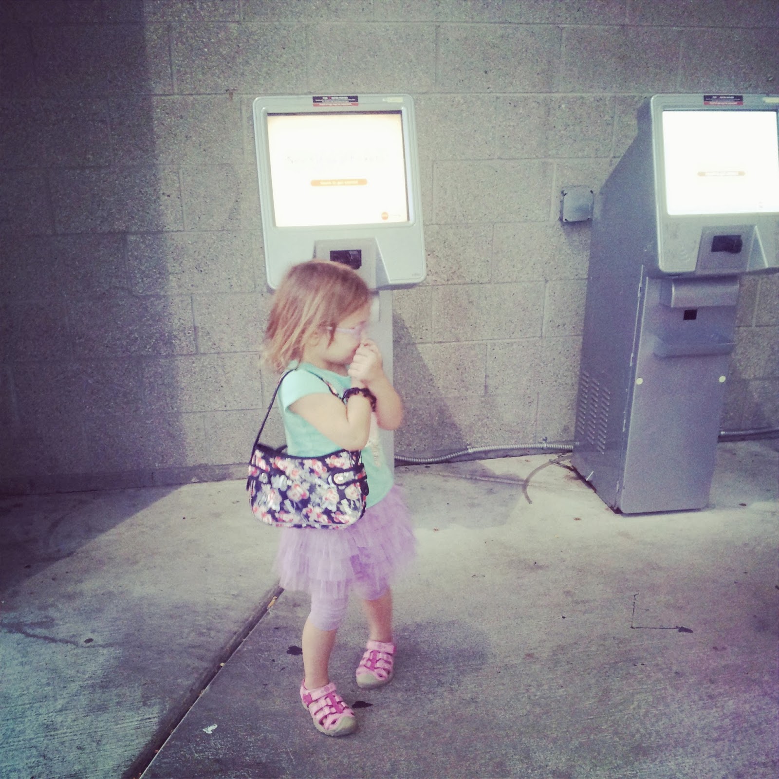 After our picnic in the park we decided to head to the movies and enjoy some air conditioning. Now, normally going to the movie is fun but today was extra special because it was ELLIE’S FIRST MOVIE! Yup, this was the first time that Ellie has gone to the theater to see a movie and she was super excited. Today we were going to see Despicable M 2, a movie that both the girls and Grandma Zoe have been wanting to see. So with drinks and snacks in hand we headed to pick out our seats in the theater!