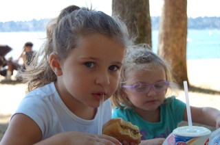 Some serious cheeseburger eating during a lovely picnic at Denny Park.