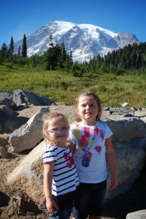 Today was the perfect day  for a trip to Mt. Rainier. The weather was beautiful, sunny and without the threat of thunderstorms or other cloudy weather that could block our view of the mountain. With the help of Abby and Ellie, we packed up a cooler for a picnic and loaded up the car for a day out. Abby has been fascinated by Mt. Rainier, ever since her first trip to Seattle so she was ready and very excited to get a move on.