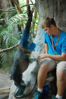 After a trip through the North American Trail we made our way to Tropical Asia. The orangutans weren’t out and about but this zoo volunteer and this Siamang was giving us a great example of the bonds that are created with some of the animals.