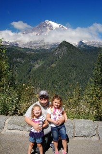 Shaun and his girls enjoying a spectacular day in Mt. Rainier National Park. The mountain is doing what it does best and creating its own set of clouds and weather. So pretty!