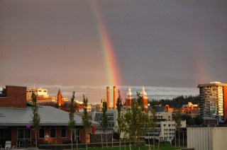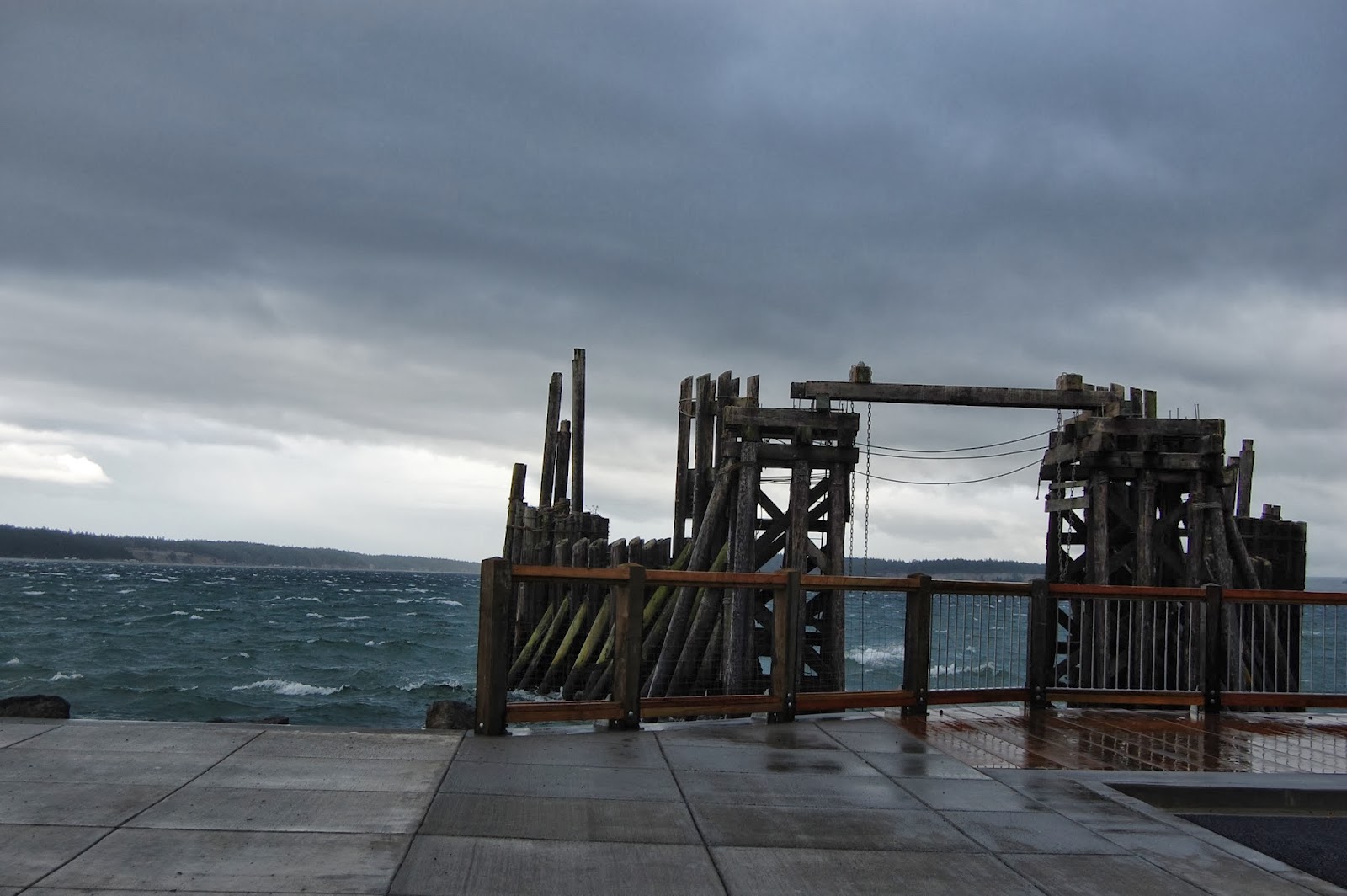 The trip out to Port Townsend was beautiful. It was stormy but the clouds were starting to break up a bit. We drove down Main Street to see the historic buildings and look at the shops. We had hoped to stop and walk through town but because it was later in the afternoon on a Sunday, most of the shops and restaurants were closed. So, we enjoyed what we could see and then drove out to Fort Worden State Park, which has some beautiful scenery and views. We headed down to the lighthouse and stopped along one of the beaches. On a clear day you can see Vancouver Island from that spot. Abby thinks its pretty neat that she can see Canada from there.