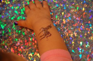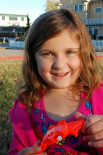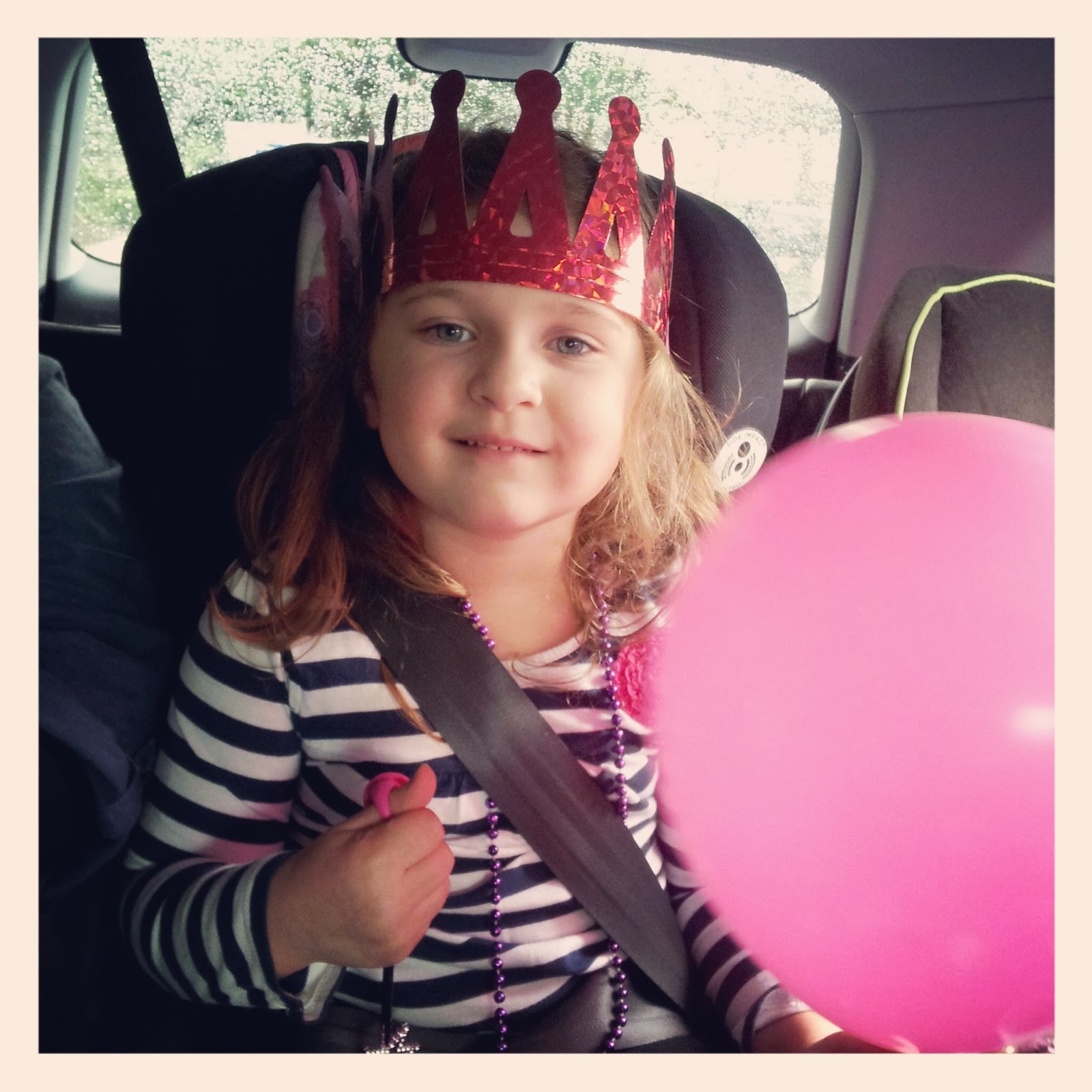 | All decked out with her goodies from Isa’s birthday party. Such a happy and excited little party goer. |