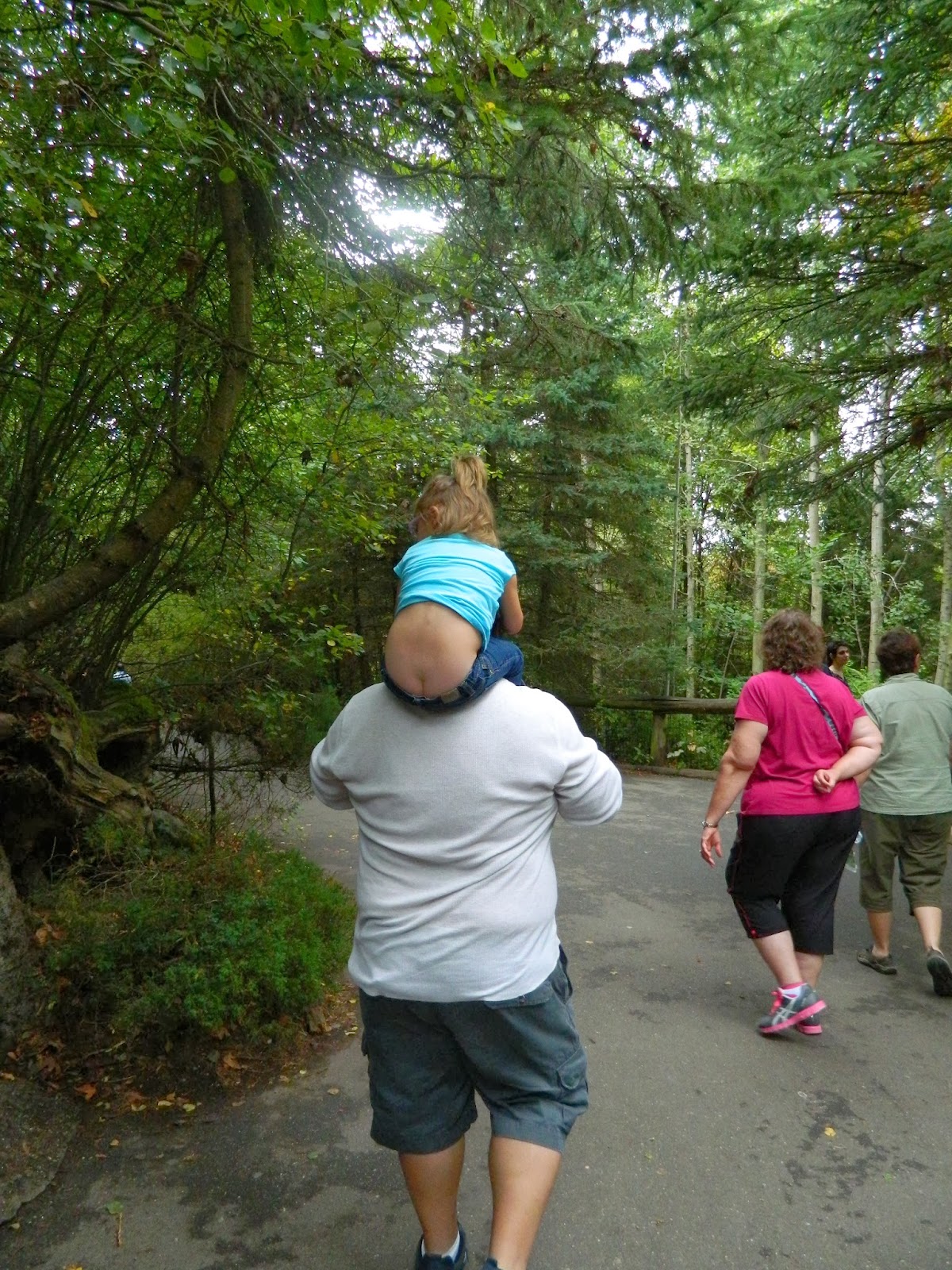 Even though the party was over, the fun was not! Daddy, Grandma Zoe and Ellie picked us up from the party and we were off for an adventure together in the car. Today, despite the rain, we thought we would take Grandma across the sound to Kingston and over to Port Gamble. We wanted to show her a new favorite spot of ours and do a bit of exploring too. The ferry ride was wet and choppy, so we opted to stay in the car most of the way over.
