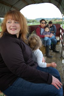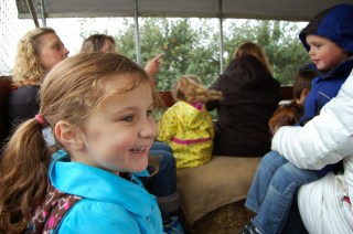 On the tractor heading out to the patch to find the perfect pumpkin.