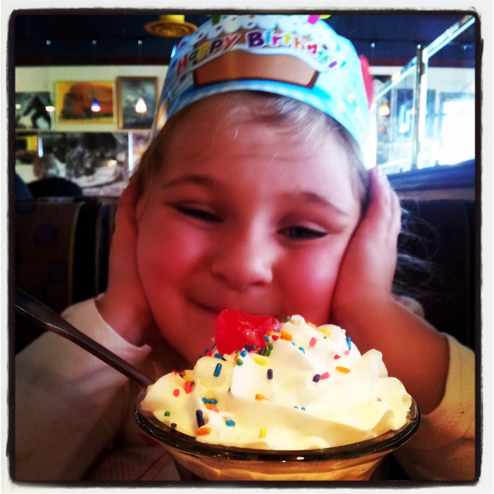 After school, I took Abby and Ellie for a special birthday lunch at Red Robin. Abby had her favorites and as a special treat, she had an ice cream sundae and several of the ladies sang Happy Birthday to her. She was a little embarrassed but once everyone left, she giggled about it.