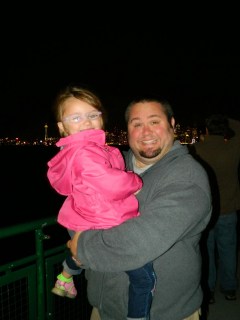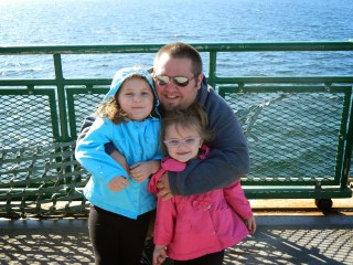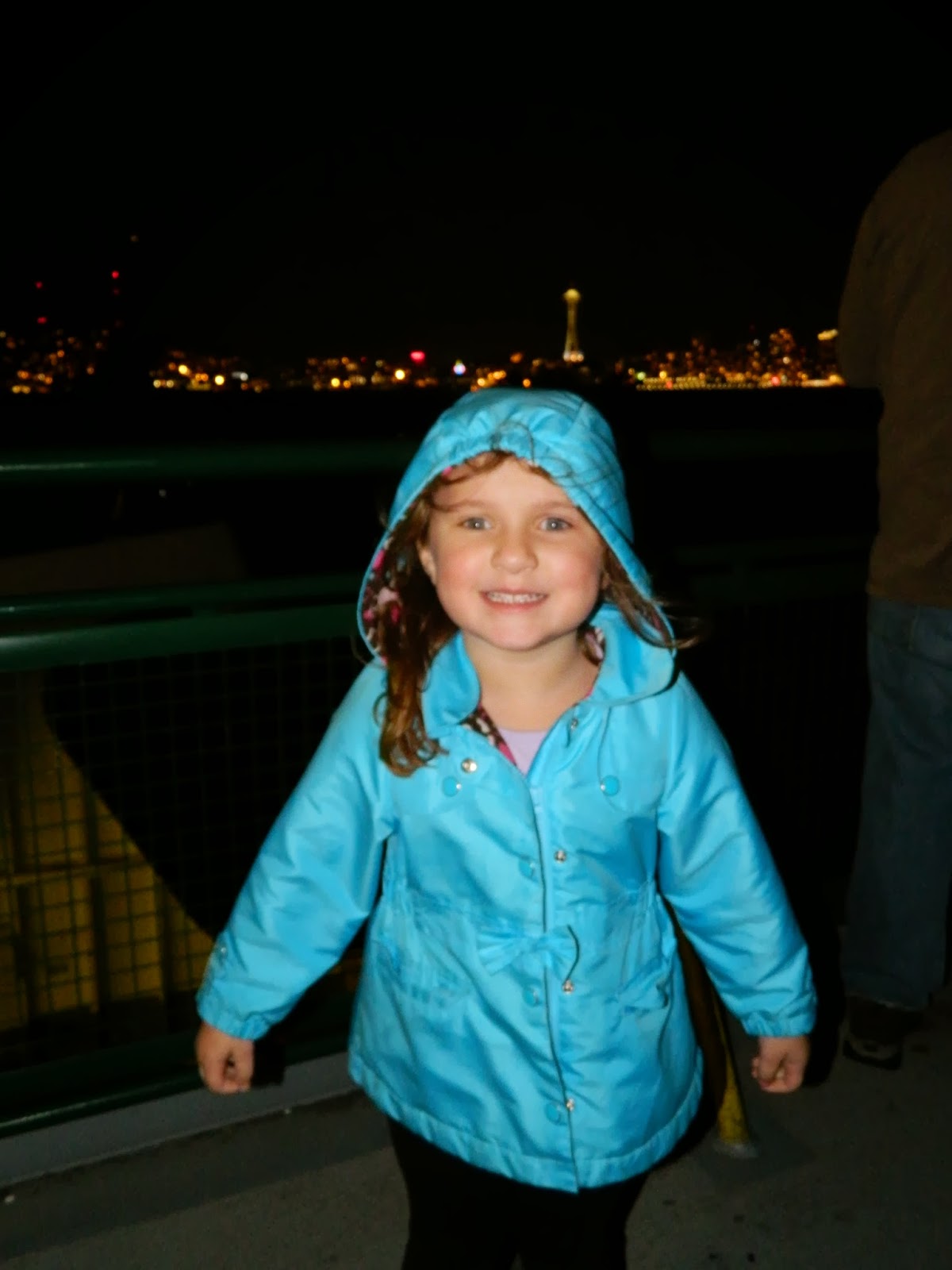Once on the other side, we quickly stopped to get the girls sweatshirts (we managed to forget them at home and it ended up being pretty cool outside). After a little shopping we continued on and Shaun decided to take a different way home, one that Abby has been very curious about. This time, instead of heading to Bainbridge to take the ferry we headed to Bremerton. Abby always sees the Bremerton ferry during our travels from Seattle to Bainbridge and asks to go on it. Well this time, she did! Its a longer trip and goes past some pretty areas along the sound. Unfortunately we didn’t get to see much. By the time the ferry arrived and we were on it, the sun was setting. That’s OK though, we had a great time anyway! Once again, you never know what kind of adventure we might go on.