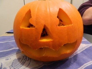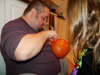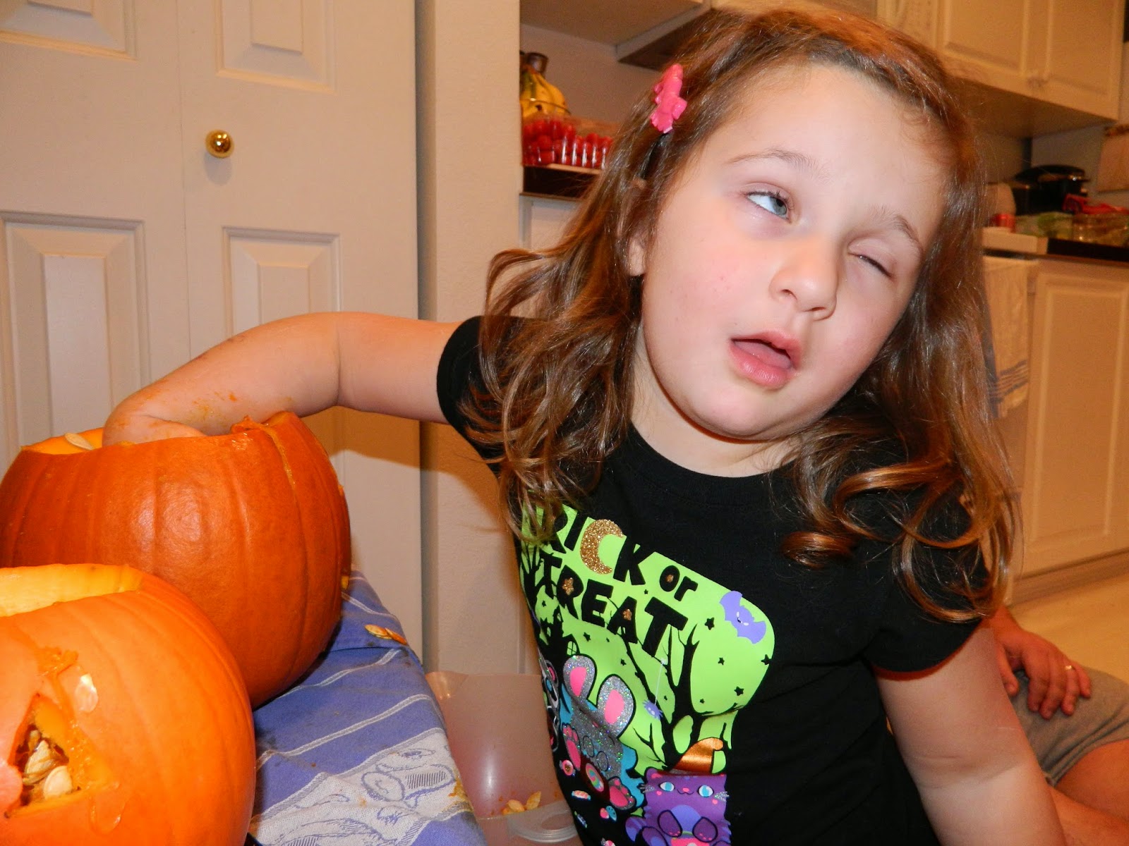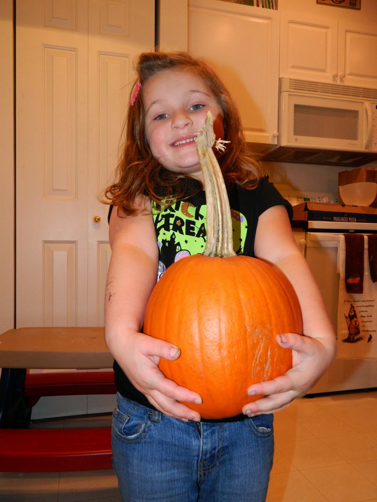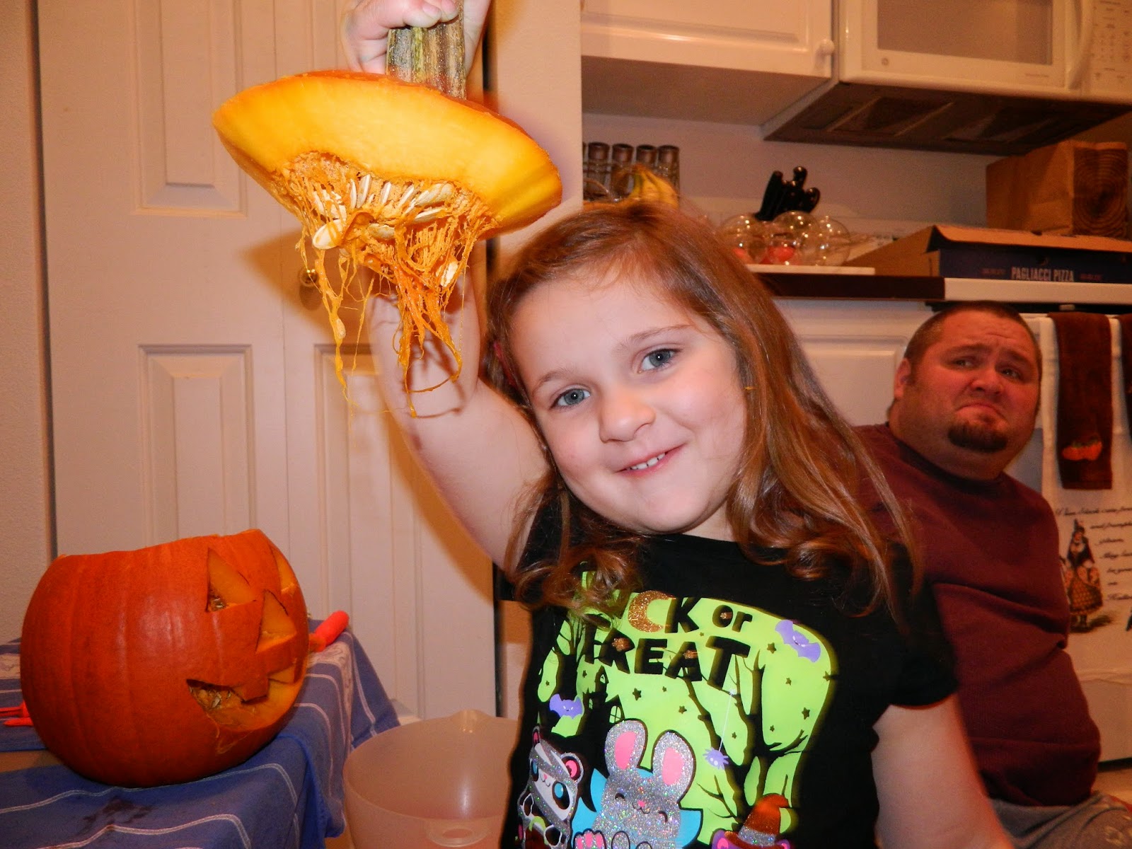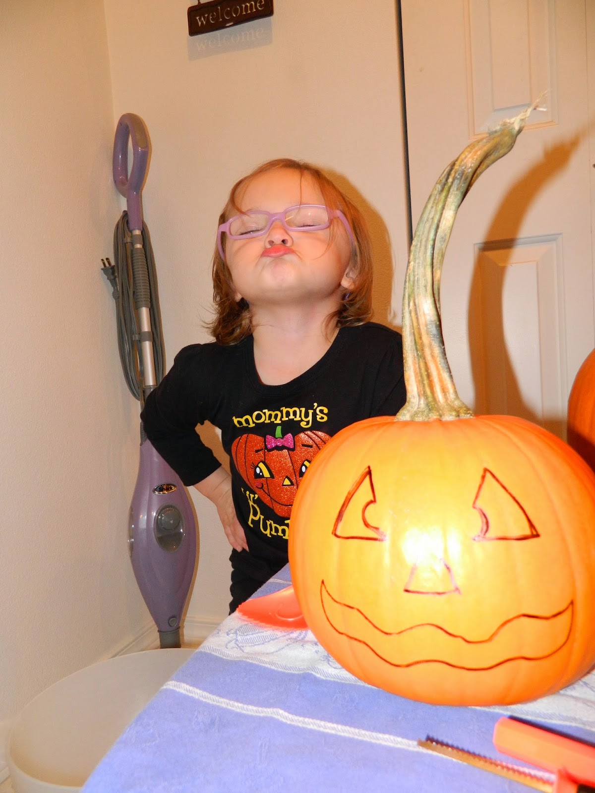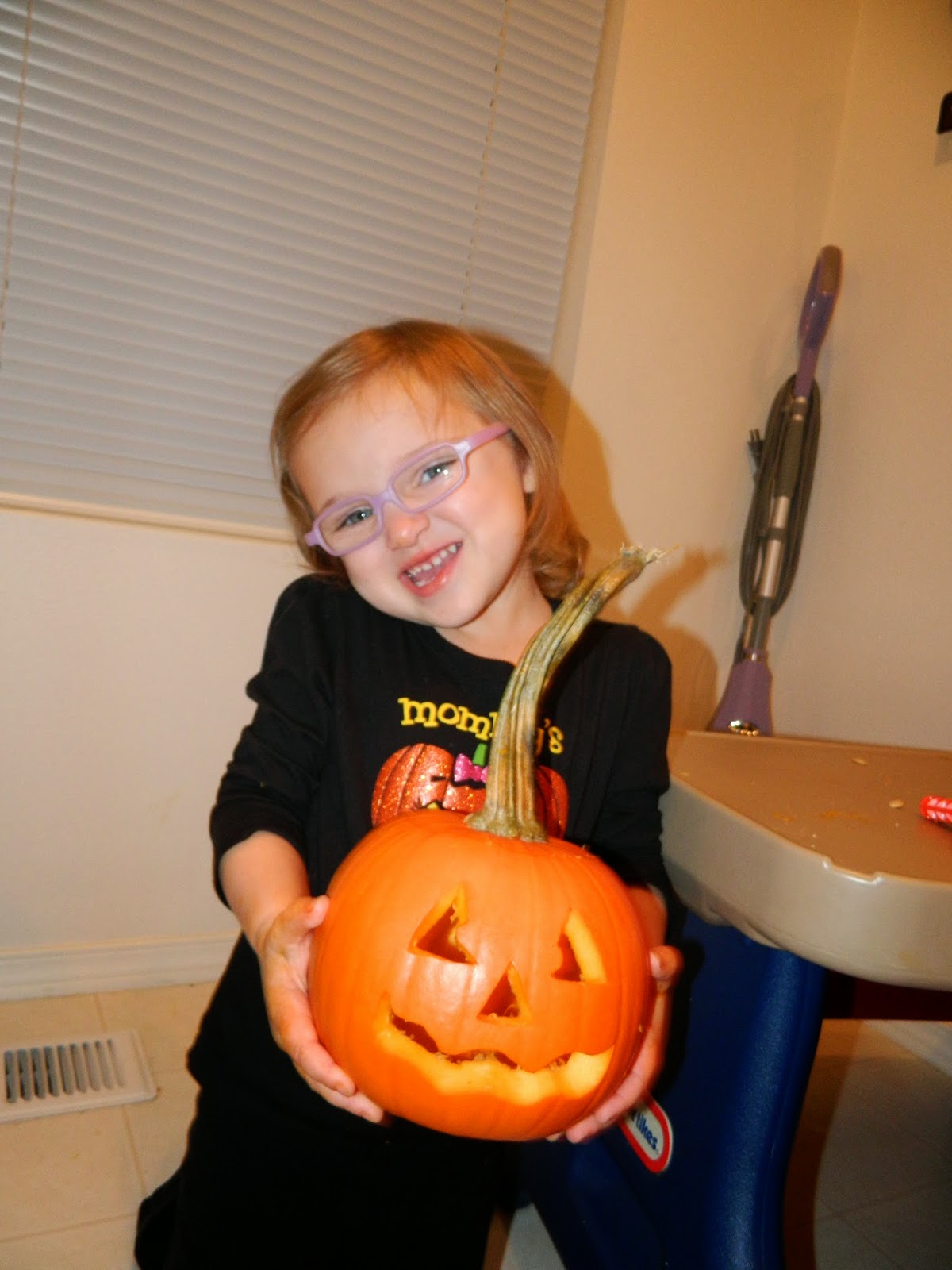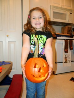 My cutie and her finished Jack O’ Lantern. She was so proud of it!