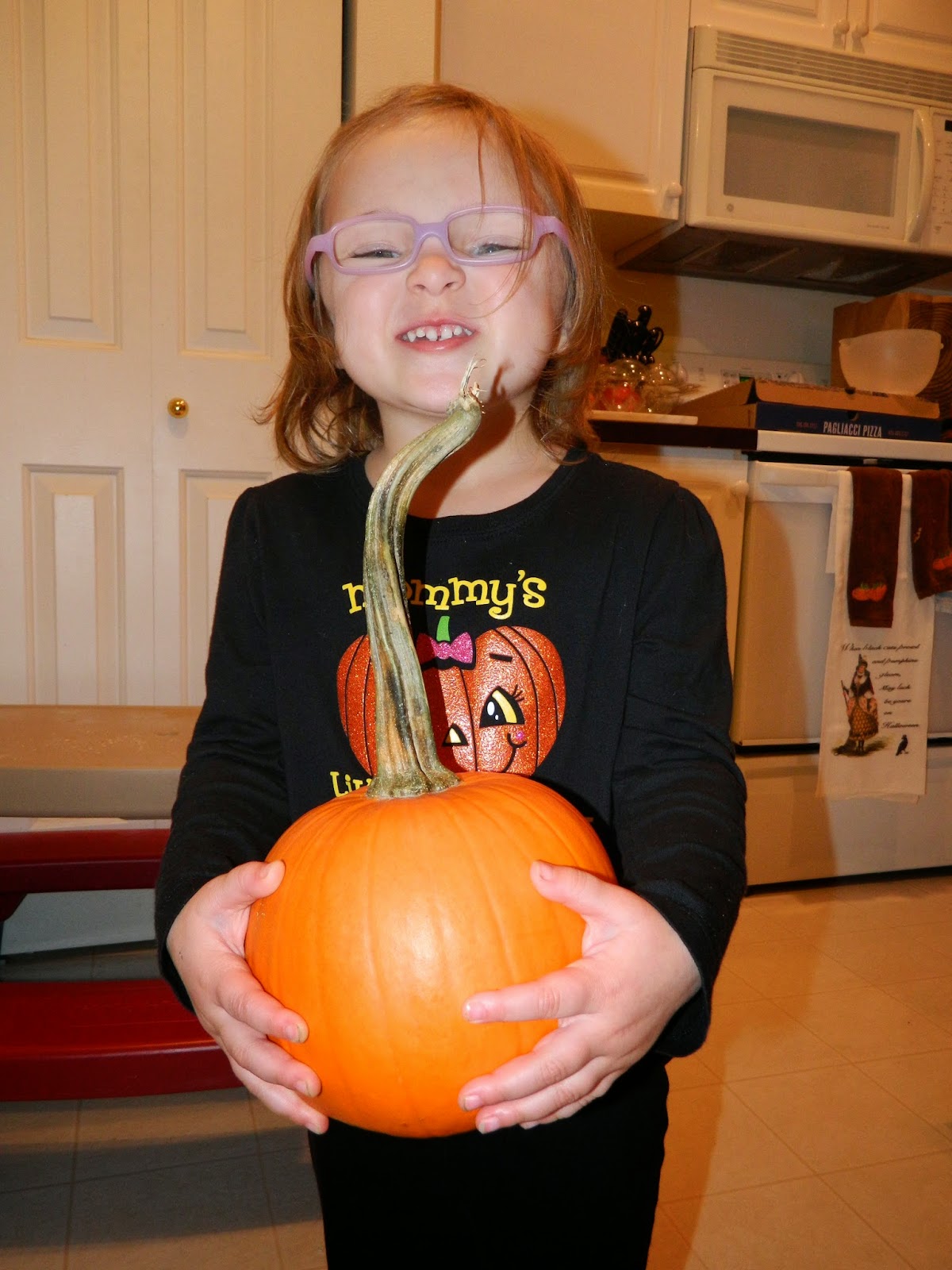 Ellie found the perfect pumpkin! Cute as a button just like her!