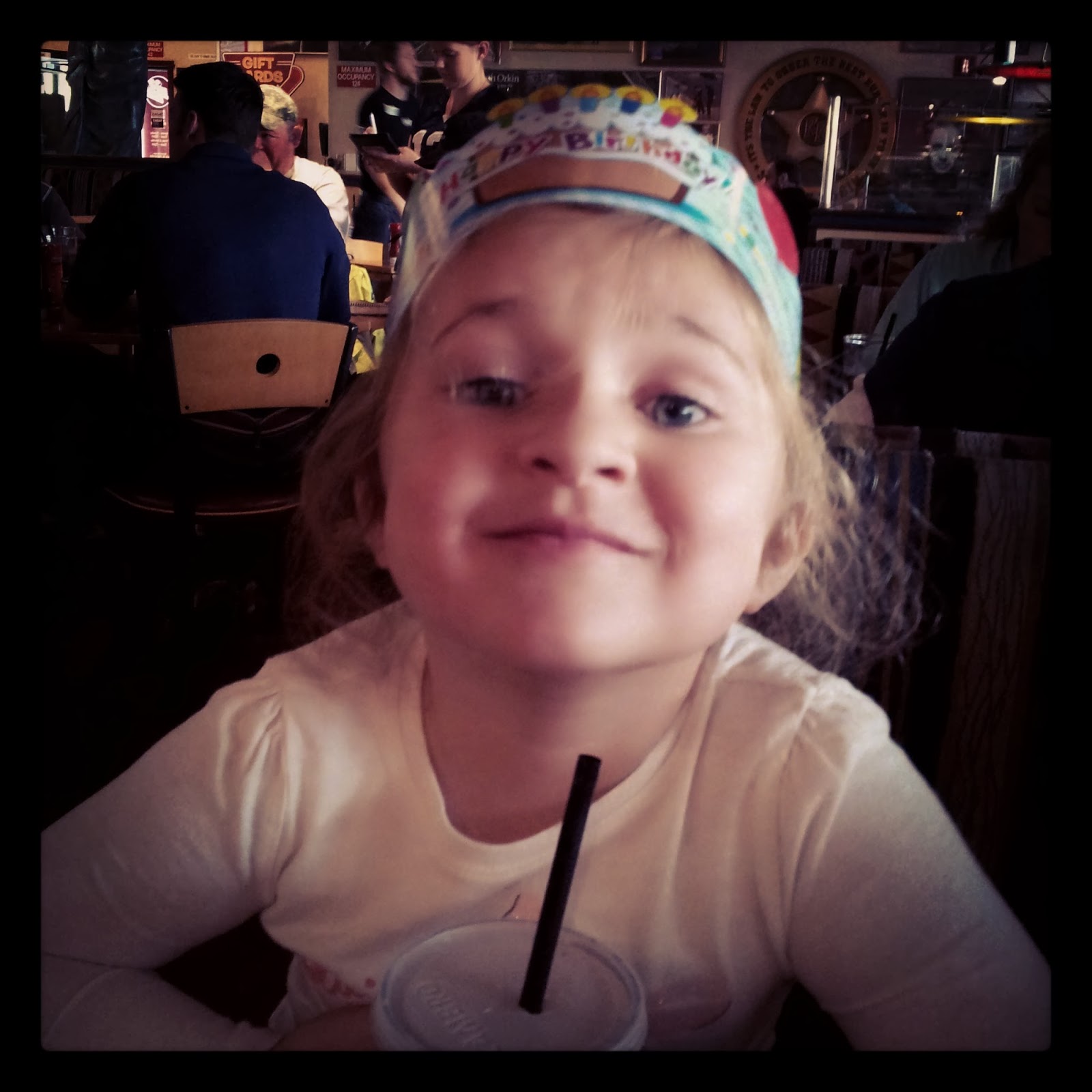 All ready for a birthday lunch. She loves Red Robin, can you tell?