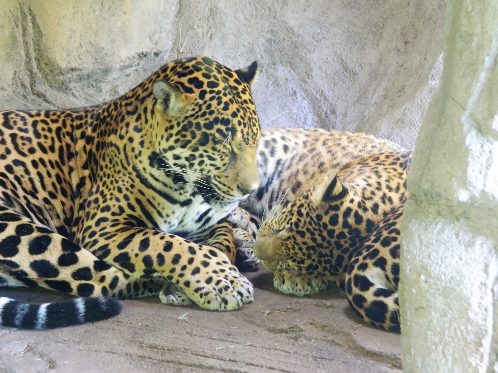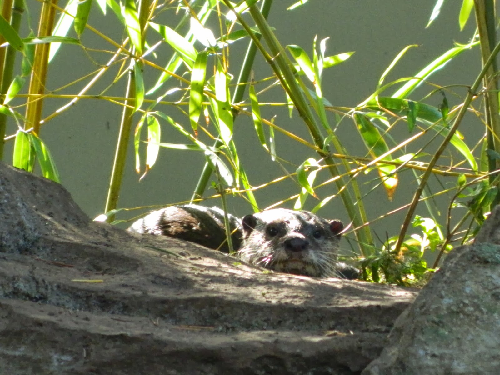 The Asian small-clawed otters were out with their babies. Unfortunately they spent most of their time hiding behind the rocks playing in the bamboo.