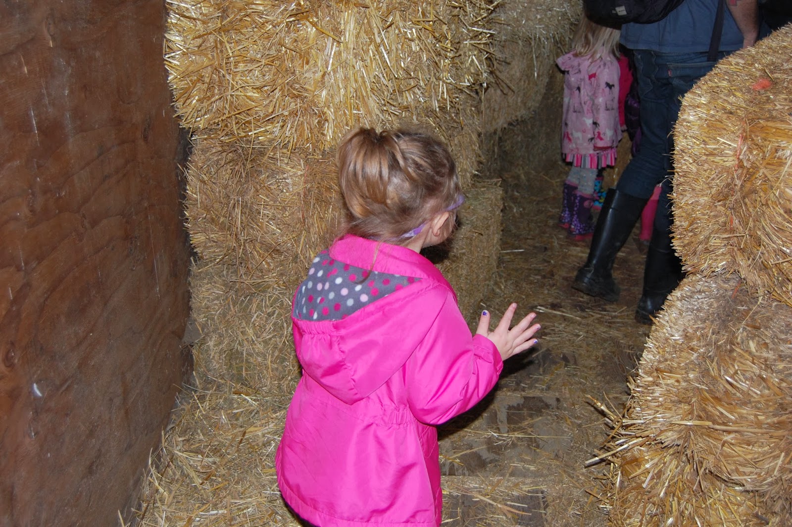 Taking mommy through the barn maze. We were in search of the slide at the end of the maze.