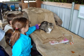 Not only did she pet a kitten, she pet the kittens mommy who was keeping watch near by.