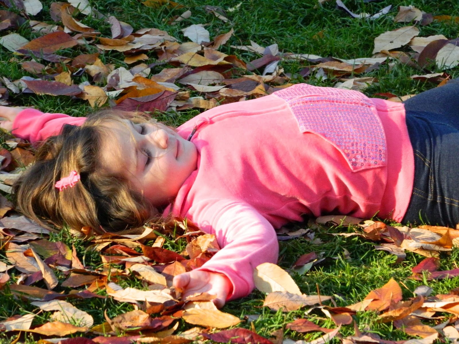 Rolling down the hills into piles of leaves. The joys of being a kid!