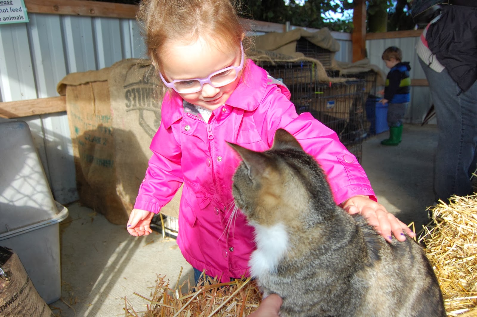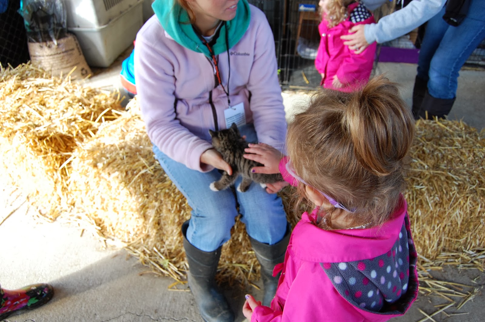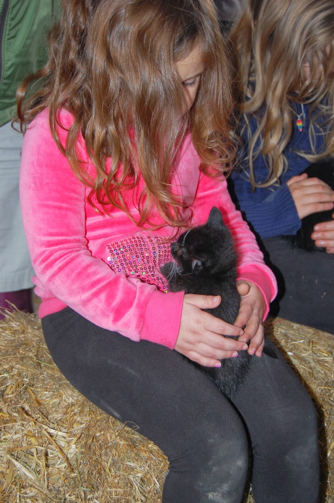 Petting the new little kittens at the barn. I was so proud of her for petting them. She also pet the farms old basset hound too! Way to go Abby!