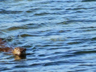 As we walked along the little park and garden, my dad and Shaun noticed something swimming out in the water. Further investigation revealed that there were not one but two things swimming around in the waves and they were Sea Otters! We hopped into the car and drove down to an old logging dock and lot close to the water where they were swimming. The pair was swimming very close to the shoreline and I was able to snap a quick photo of one before they caught on to us and headed back out into the small bay that Port Gamble sits in.