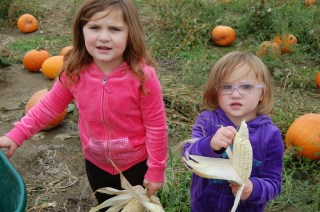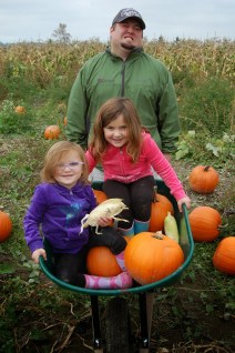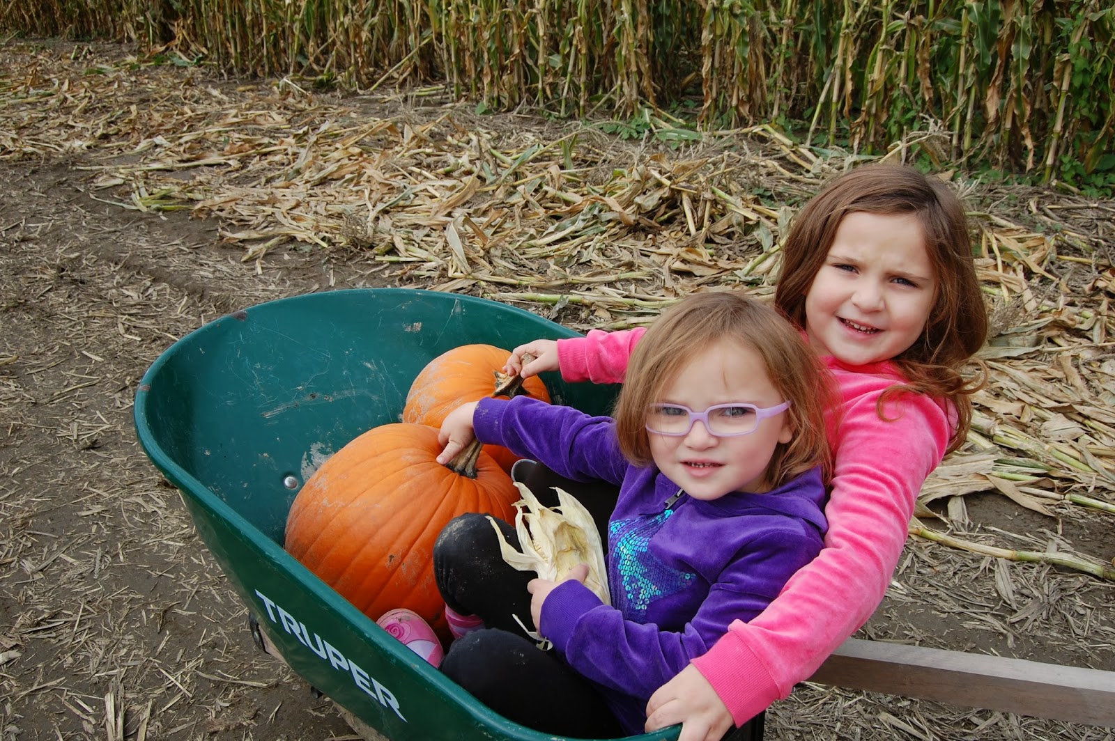 Realizing that Daddy was missing out on all of the fun, the girls decided that they wanted to take him to the farm for some pumpkin picking fun. If Abby and Ellie each had a pumpkin to carve, mommy and daddy needed one too! So off to the farm we went!