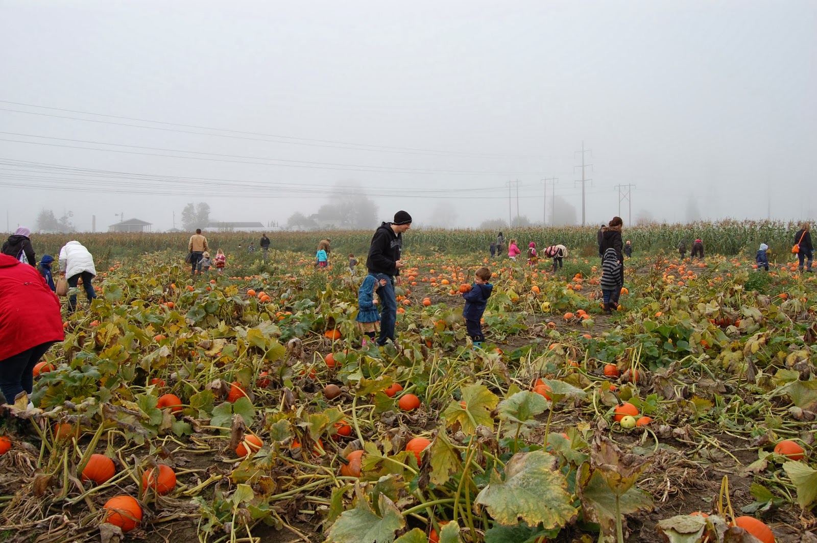 Out with all of her classmates, searching for the right pumpkin to take home.
