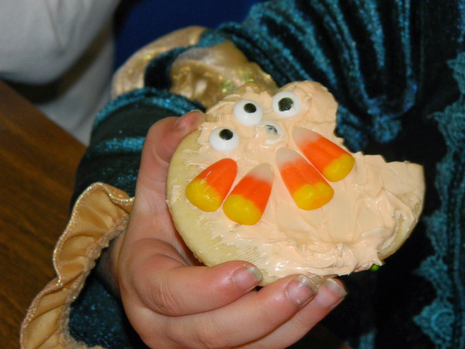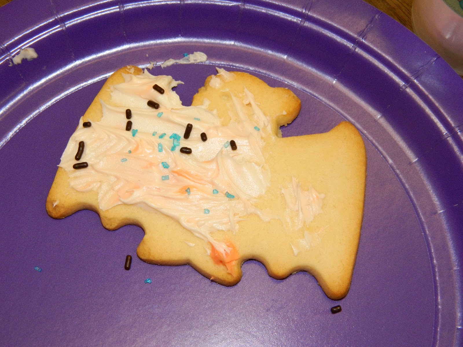 | Ellie had the chance to make Halloween cookies too, she was very focused on the decorating part. |
