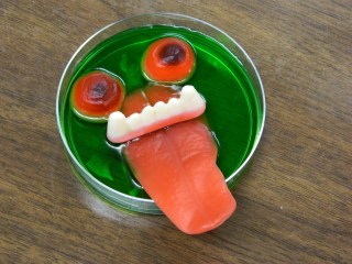 | Abby’s teacher made these awesome monster faces with petri dishes and jello for the kids. Such an awesome idea! |