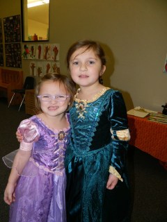 | Abby and Ellie all dressed up for their school Halloween parties! Ellie was Rapunzel and Abby was Merida. |