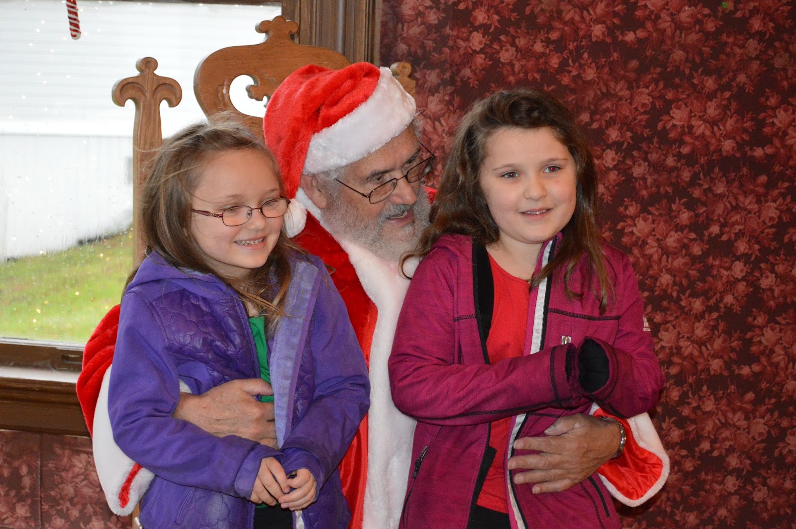 Our usual Santa was not there this year, which was a bummer but the man who came in was very nice. It seems as though things were a little bit scaled back this year, maybe based on last years turn out? Because the crowds had not shown up yet, the girls had the chance to talk a lot with Santa and he certainly made them giggle with silly jokes and songs. Mommy and Daddy also had the chance to hear what they wanted for Christmas, as they haven’t been very helpful on that front.