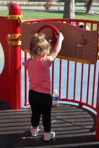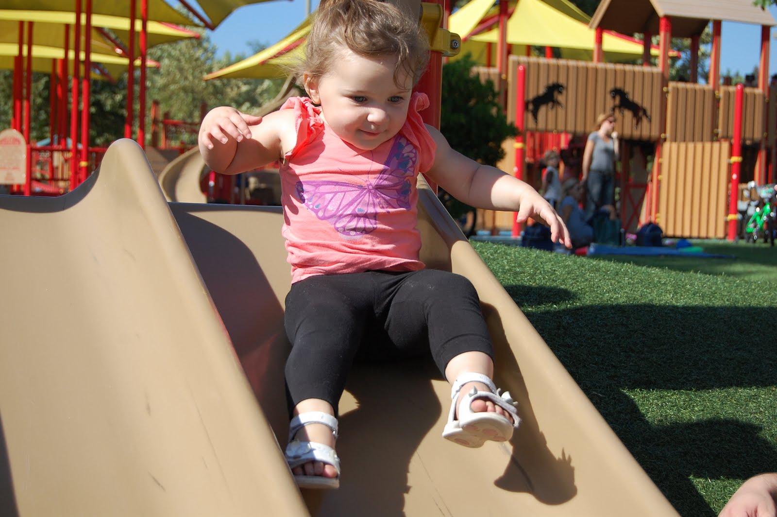 When we got there Abby wanted to head directly to the swings and there she stayed for nearly 45 minutes. Shaun was finally able to get her to move on, but it took some persuasion. From there she ran around the toddler sized play area, hit the slide a few times, and had herself a wonderful time. She even had a little friend to play with, until that child started pushing her and her parents where nowhere to be found to prevent it. Who leaves their child unattended at a busy park?!(I wont get myself started on that one) Abby had a wonderful time and Ellie slept peacefully in the stroller.