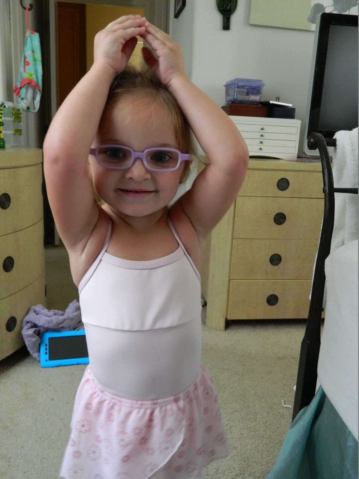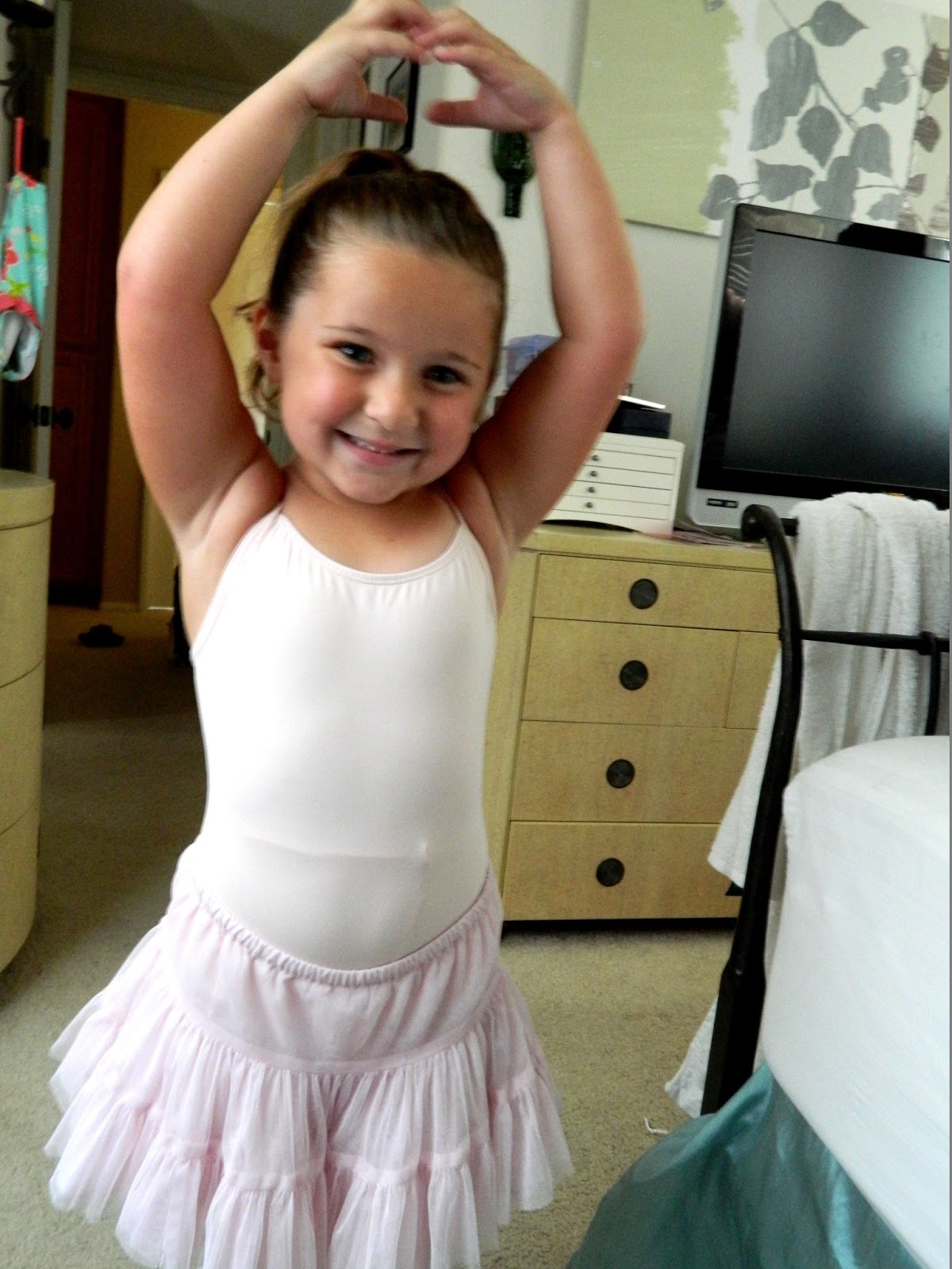 Today was Abby’s first day at dance! She has been asking us for a few months now about taking ballet. I swear I had nothing to do with this! I think its the Angelina Ballerina cartoons she watches. Abby was so excited to get dressed in her leotard and ballet skirt. I couldn’t contain her excitement.