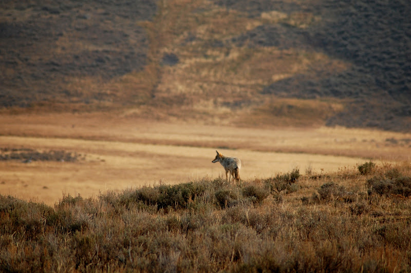 along the way we saw our first animal that didn’t have hooves, a lone Coyote hunting rodents in a meadow.