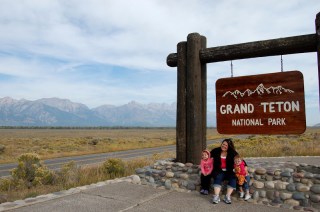 Mommy and the girls about to enter Grand Teton National Park