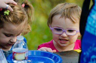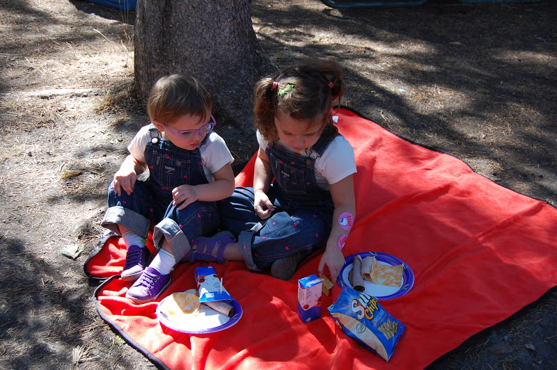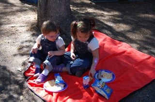 the girls ate on their own picnic blanket and ate their lunch quietly. Their focus was on the river and skipping rocks.