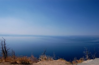 the smoke from fires kept the day from being clear but the blue water was still amazing and the view was stunning.