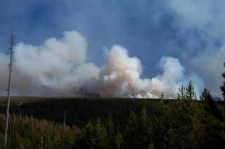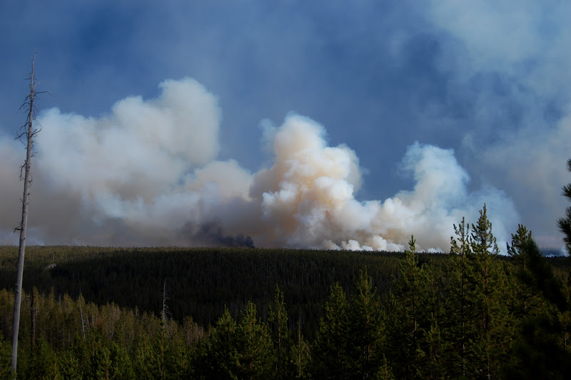 on the road to Norris we could see the smoke plumes. At one point we could see the flames in the trees near the road.