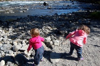 after eating and cleaning up the girls had the chance to skip rocks and relax by the river.