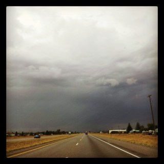 As we started heading out of the mountains and into Idaho Falls, it became apparent that a large storm was coming. The hanging clouds over the last glimpse of the Tetons eventually led to massive dark clouds and pouring rain. I had hoped for a good storm the entire trip and I was now finally getting one. It poured buckets until Malad Pass south of Pocatello. The girls were asleep, it was pouring rain and I was completely in heaven.