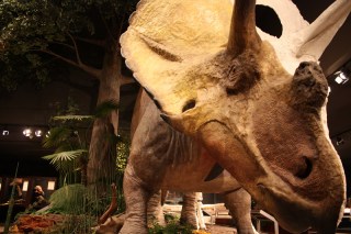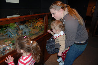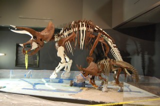| Abby’s favorite exhibit in the museum, the mama Triceratops with her baby. You can actually see the baby breathing. |