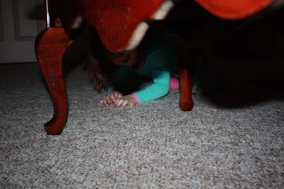 | Abby was hiding from me. I guess she wasn’t too thrilled with taking pictures first thing in the morning either. |