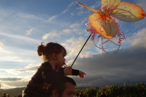 The day was beautiful, just warm enough with the perfect cool breeze. The girls rode around in one of the red wagons which, with mommy and daddy pulling, was a ride of its own. Their one special treat while we were there was to ride the ponies. Both girls were thrilled to be doing it, but it was Ellie who loved it so much that she didn’t want to get off. Luckily we were able to do so without causing a scene.